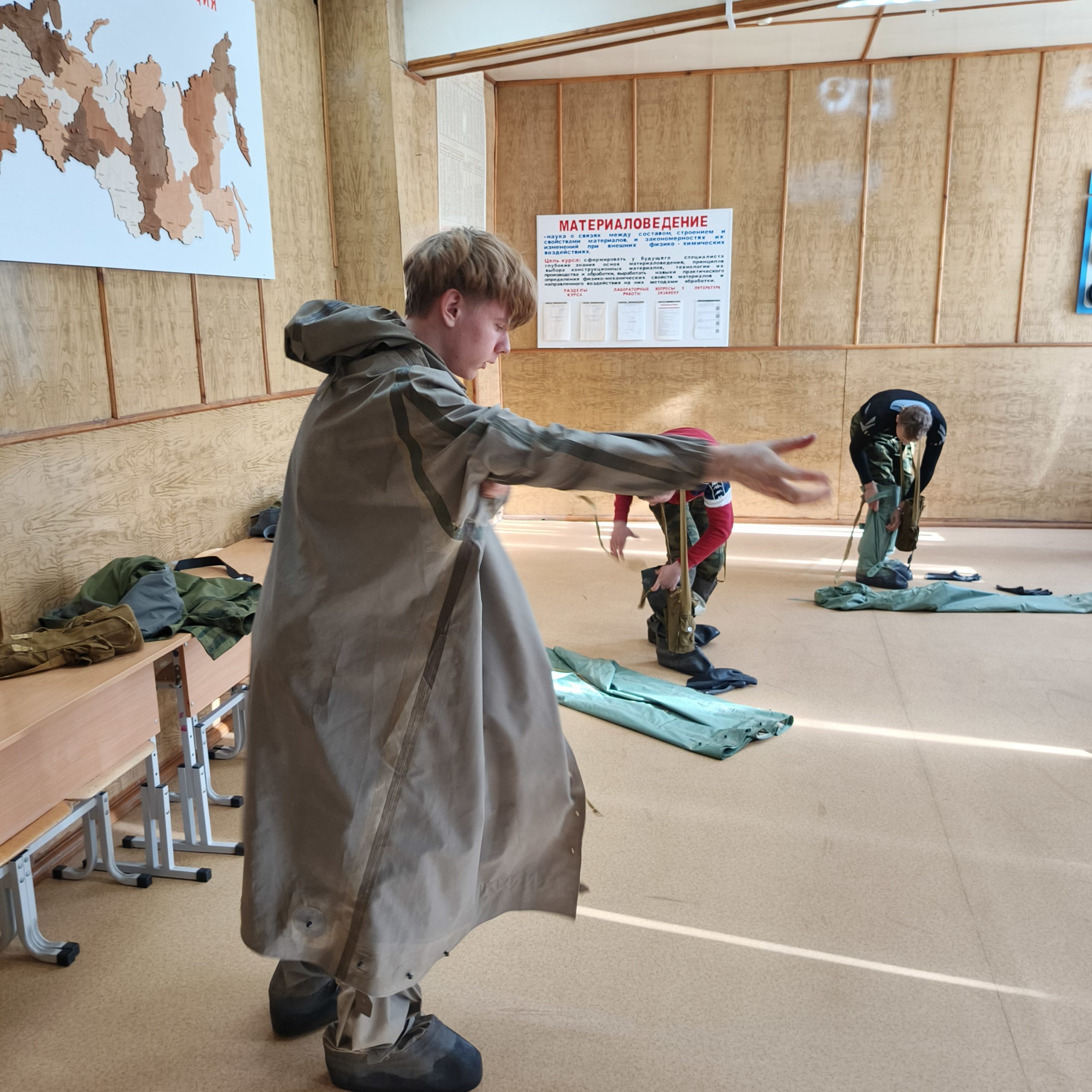 – Надевание общевойскового защитного костюма.