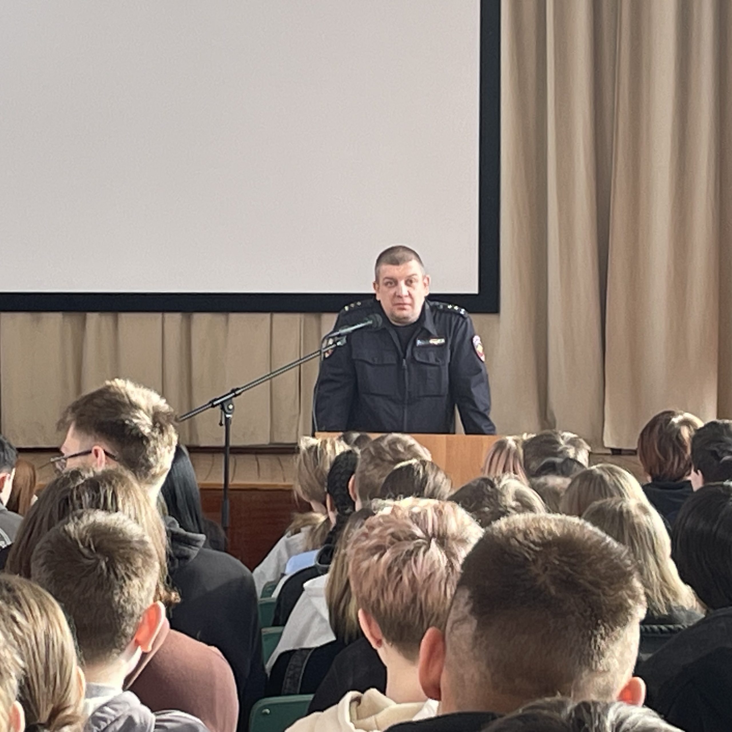 Особое внимание в разговоре было уделено актуальным угрозам современности. Голубцов А.В. подробно остановился на теме дистанционного вовлечения подростков в противоправную деятельность. Он разъяснил ребятам, как злоумышленники через интернет могут склонять несовершеннолетних к совершению тяжких преступлений за денежное вознаграждение, таких как: хранение, употребление и сбыт запрещенных веществ; мошеннические действия; диверсии.